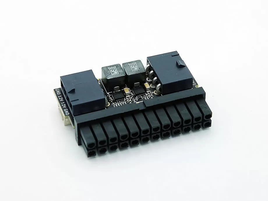 The most thorough solution, but also the most complex, is replacing the HDPlex by a Meanwell power supply. Similar to the 2426 solution, you will only have wires for the 12V but all the other required signal wires (ps_on, ps_good, etc.) are also eliminated as these signals are generated by the ATX plugin unit.