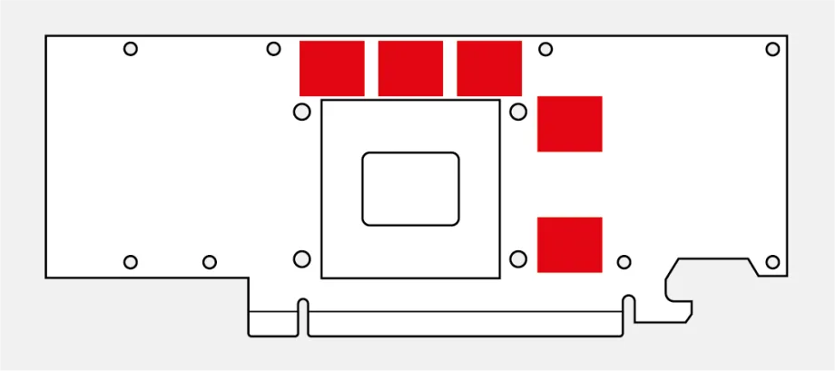 Replace the original thermal pads with the ones included. There are a total of five pads for the RTX 4000 SFF Ada generation and four pads for the RTX 2000 Ada generation.