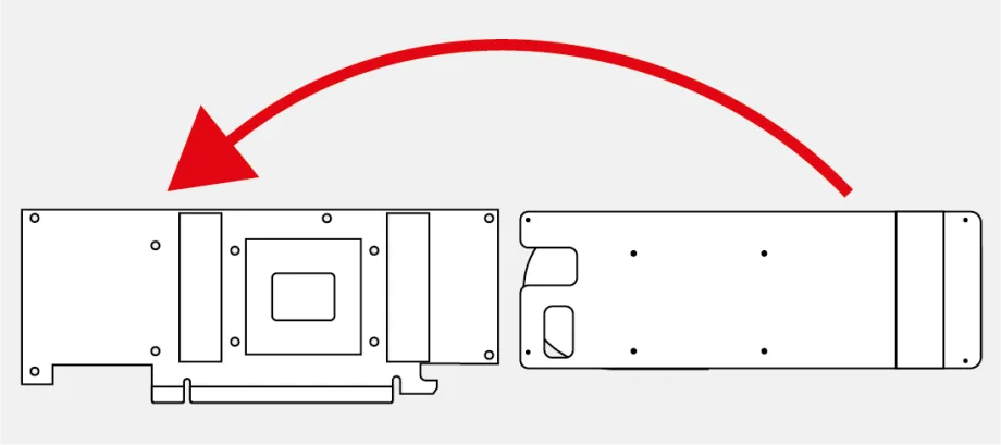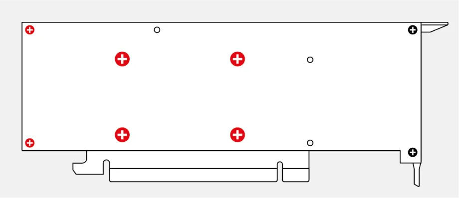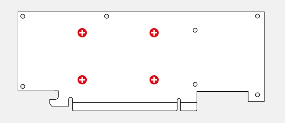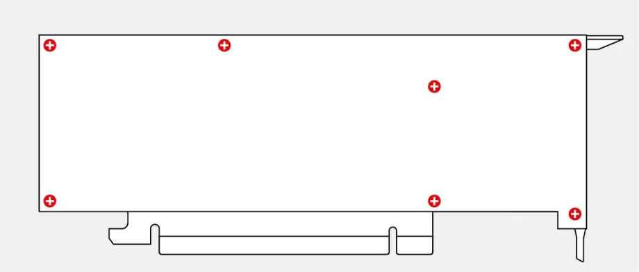 Unscrew seven screws on the back of the card. Remove the backplate and PCIe bracket.